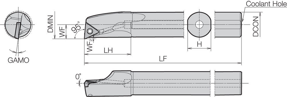 Kyocera A20RSTLCL1122AE Left-Hand, Positive Rake, Dynamic Bar Coolant-Through Boring Bar with 95 Degree Lead Angle and 22.00mm Minimum Bore Dia.